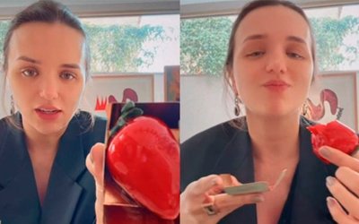 “Muuuuita comida e Morango do amor em excesso pra Zuza hahaha…”, completou a artista. Nos stories, Rafa mostrou a reação ao receber o doce em casa: “Estou chocada com a beleza disso aqui, três empresas me mandaram e eu não tenho nem onde colocar tanto morango do amor… Estou salivando de vontade de experimentar. Ontem até parei de ver vídeos porque estava com muita vontade”. O morango do amor é feito com a fruta fresca, envolvida por brigadeiro branco e finalizada com uma camada de caramelo vermelho.