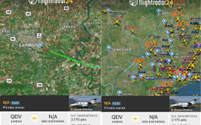 Nas imagens, você confere os prints do radar do avião. O piloto do avião desligou o radar para despistar inclusive, mas este veículo descobriu o verdadeiro paradeiro do cantor.
