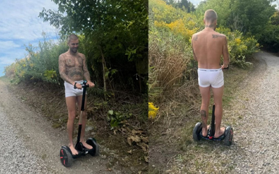 Justin Bieber atiçou as fãs no fim do dia desta quarta-feira (10) ao publicar uma sequência de fotos usando apenas roupa íntima enquanto andava de overboard, uma espécie de patinete, em uma trilha. Nos registros, o canadense aparece todo sorridente, de cueca branca.