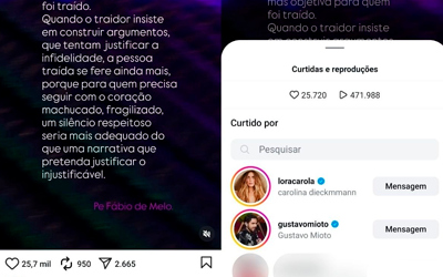 O texto curtido por Mioto fala da dor de quem é traído e critica tentativas de justificar infidelidades, defendendo que, para quem está ferido, “o silêncio respeitoso” seria preferível a narrativas que “queiram justificar o injustificável”. Nas redes, o engajamento do sertanejo foi visto como um recado cifrado, ainda que nenhum dos três tenha confirmado qualquer envolvimento amoroso.