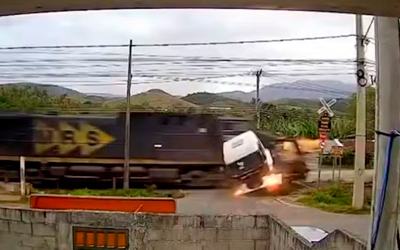 Um vídeo registrou o instante em que um caminhão foi atingido por um trem ao tentar cruzar a linha férrea em Vassouras (RJ). O acidente ocorreu na tarde de terça-feira (23/9). As imagens, captadas por uma câmera de segurança, impressionam e têm repercutido bastante. O material foi divulgado pela TV Rio Sul.