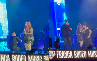 O show da dupla Hugo e Guilherme, nesta sexta-feira (26/9), foi marcado por um momento para lá de romântico, na segunda noite do Franca Rodeo Music 2025. Durante a apresentação, um homem subiu ao palco para se declarar e pedir sua namorada em casamento, que rapidamente respondeu com o “sim”.
