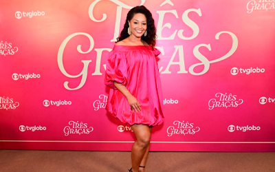 Aatriz Juliana Alves está de volta às telinhas com a personagem Alaíde, na nova novela de Aguinaldo Silva “Três Graças”. A artista, que esteve presente na festa de lançamento da trama nesta terça-feira (7/10), em São Paulo, contou alguns detalhes do seu núcleo, além de elogiar e falar com carinho de seus parceiros de cena.