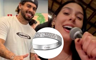Os anéis de Ana Castela e Zé Felipe talvez não sejam um símbolo de compromisso (ainda), mas são puro luxo! Segundo o colunista Matheus Baldi, os modelos fazem parte da coleção da grife nova-iorquina Cartier. Em ouro branco e cravejados com 72 diamantes cada, eles custam cerca de 5.950 euros, ou R$37.609 por peça. No caso do casal, o par de “alianças” pode ter chegado a R$75 mil.