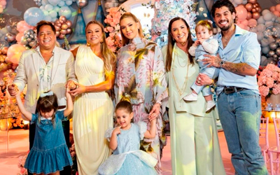 Zé Felipe chegou ao aniversário da filha do meio, Maria Flor. A família completa esteve o tempo todo sorridente, completando o conto de fadas criado para a pequena. Vale mencionar que o cantor chegou atrasado à festa, após participar da gravação do DVD de Zé Vaqueiro, realizado em Caruaru, compromisso que já estava marcado há muito tempo.