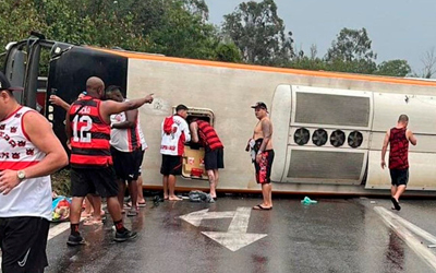 Um ônibus que transportava torcedores do Flamengo se envolveu em um acidente na tarde desta segunda-feira (27/10), na Rodovia Presidente Dutra, no km 282, nas proximidades de Barra Mansa.