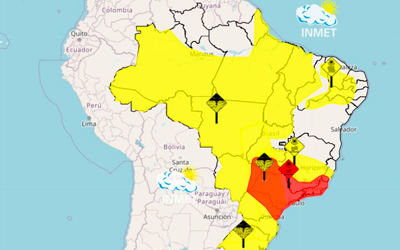 Neste domingo, os estados que já estão em alerta terão o calor intensificado com máximas previstas de até 41ºC no Rio de Janeiro (RJ), 38ºC em São Paulo (SP), 36ºC em Mato Grosso do Sul (MS) e 35ºC em Minas Gerais (MG).
