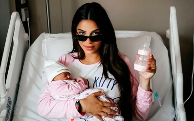 Key Alves, de 25 anos, publicou neste domingo (28/12) a primeira foto ao lado da filha, Rosamaria. No registro, a jogadora de vôlei aparece de óculos escuros, com a bebê no colo e uma mamadeira na mão. Na legenda, escreveu: “Modo mamãe ativado”.