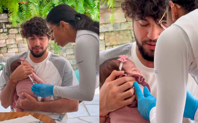 Nattanzinho, de 27 anos, compartilhou nesta quinta-feira (29/1) um registro com a filha Zuza, que nasceu no dia 6 de janeiro, fruto do relacionamento com Rafa Kalimann. O cantor mostrou o momento em que a pequena recebe uma vacina em seu colo, enquanto a mamãe se derrete: “Tadinha!”.