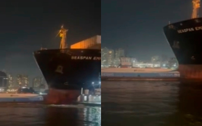 De acordo com a Capitania dos Portos e a GPORT, o Seaspan Empire colidiu com duas embarcações vazias na altura da Travessia da Dersa. Três tripulantes pularam na água após o impacto, mas foram resgatados em seguida. Uma das balsas, que era rebocada pela outra, sofreu avarias.