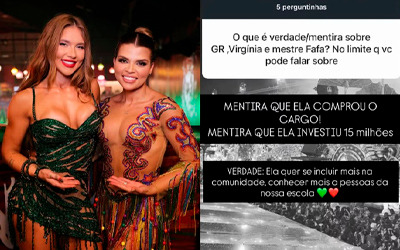 A filha do presidente de honra da Grande Rio, Thainá de Oliveira, usou as redes socias neste domingo (22/2) para sair em defesa da rainha de bateria da escola, Virginia Fonseca. A jovem negou que a influenciadora tenha investido R$15 milhões para assumir o cargo e afirmou que “ela quer ser incluída na comunidade”.