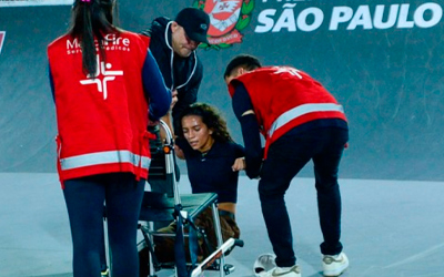 A skatista Rayssa Leal sofreu uma lesão durante o treino livre do Campeonato Mundial de Skate, realizado em São Paulo, na noite desta terça-feira (3/3). A atleta deixou a pista amparada por integrantes da organização e caminhando com dificuldade. Mesmo com a oferta de uma cadeira de rodas, a competidora optou por não utilizá-la e seguiu apoiada por profissionais presentes no local.