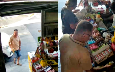 Os registros foram feitos entre 13h57 e 14h21 e mostram o motorista na frente da mercearia enquanto bebe um latão de cerveja até o momento em que segue para o caixa. Na sequência, ele realiza o pagamento da bebida, se dirige até o carro ainda com a lata na mão e sai na direção do veículo.