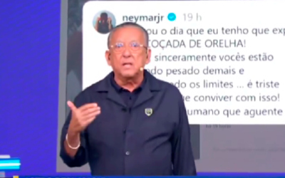 O narrador Galvão Bueno criticou Neymar Jr. após a última polêmica envolvendo o jogador. Ele foi acusado de tapar os ouvidos para não ouvir as vaias da torcida do Santos ao fim da partida contra o Fluminense, na Vila Belmiro, mas negou a intenção e se defendeu nas redes sociais. No “Galvão FC”, transmitido pelo SBT, o apresentador lamentou o discurso do camisa 10 santista.